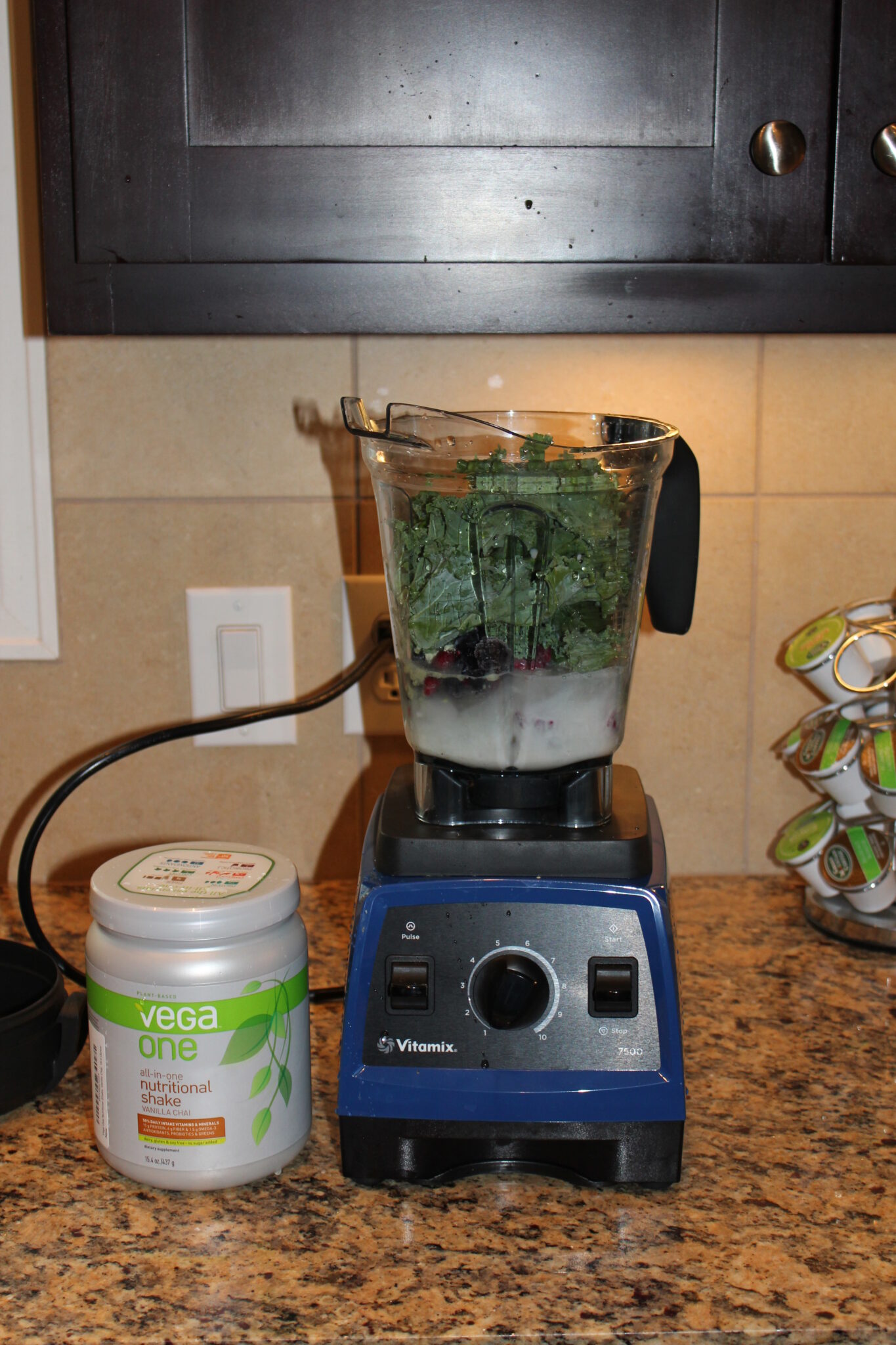 • protein powder, if you choose (I am currently loving the Vega One Vanilla Chai Nutritional Shake, which has a great blend of complete vegan proteins, greens, antioxidants, and even probiotics and digestive enzymes … and tastes delicious!)