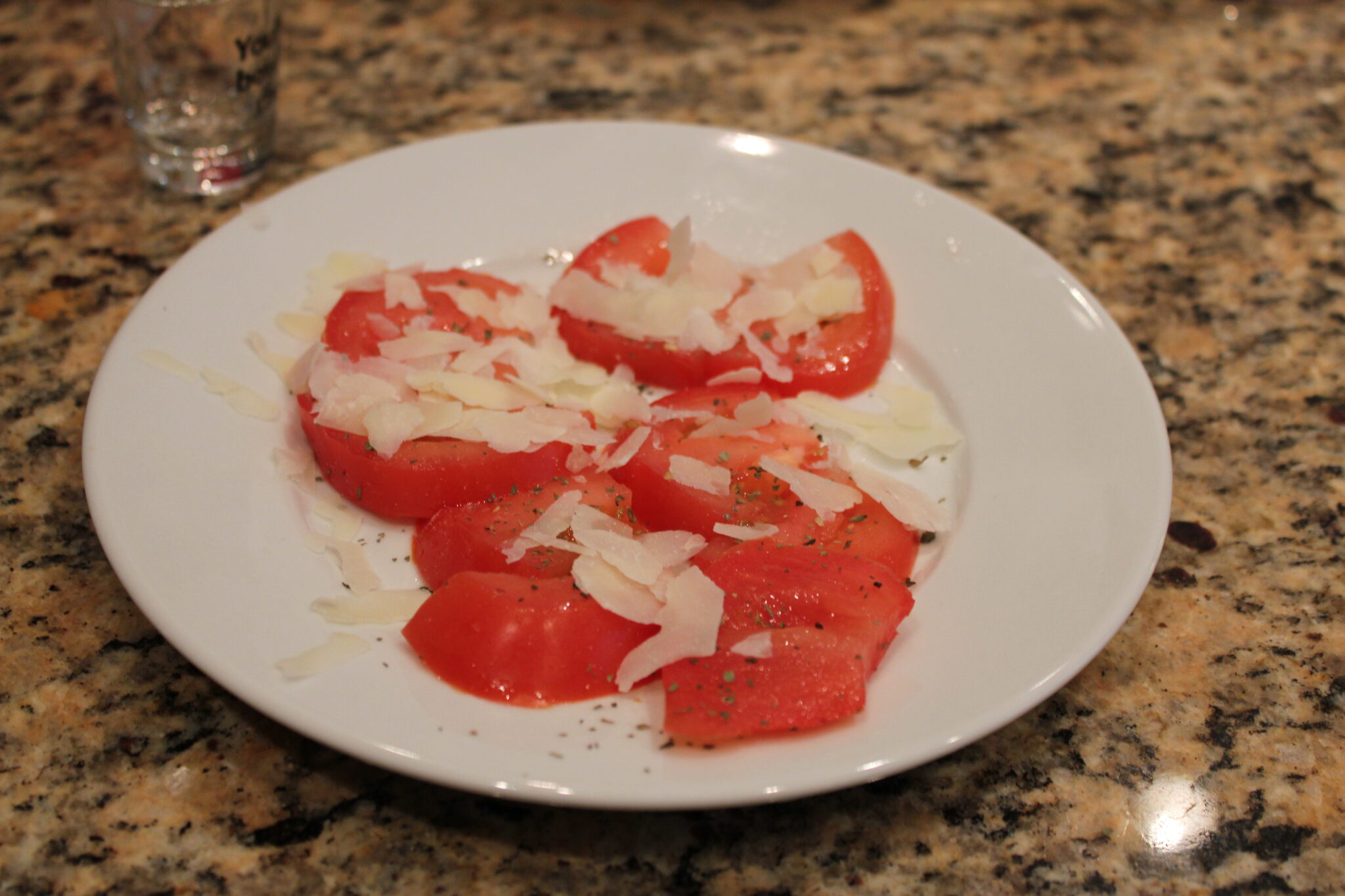 6. If you have an amazing husband like mine, he might just use some extra tomato slices, parmesan, and basil, and make you a little “appetizer” while you have to wait for your dinner in the oven! appetizer