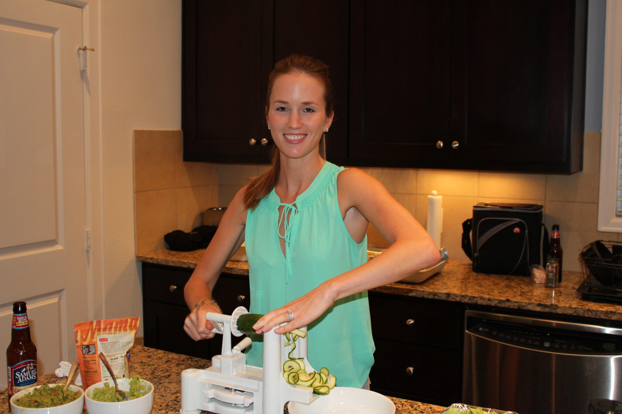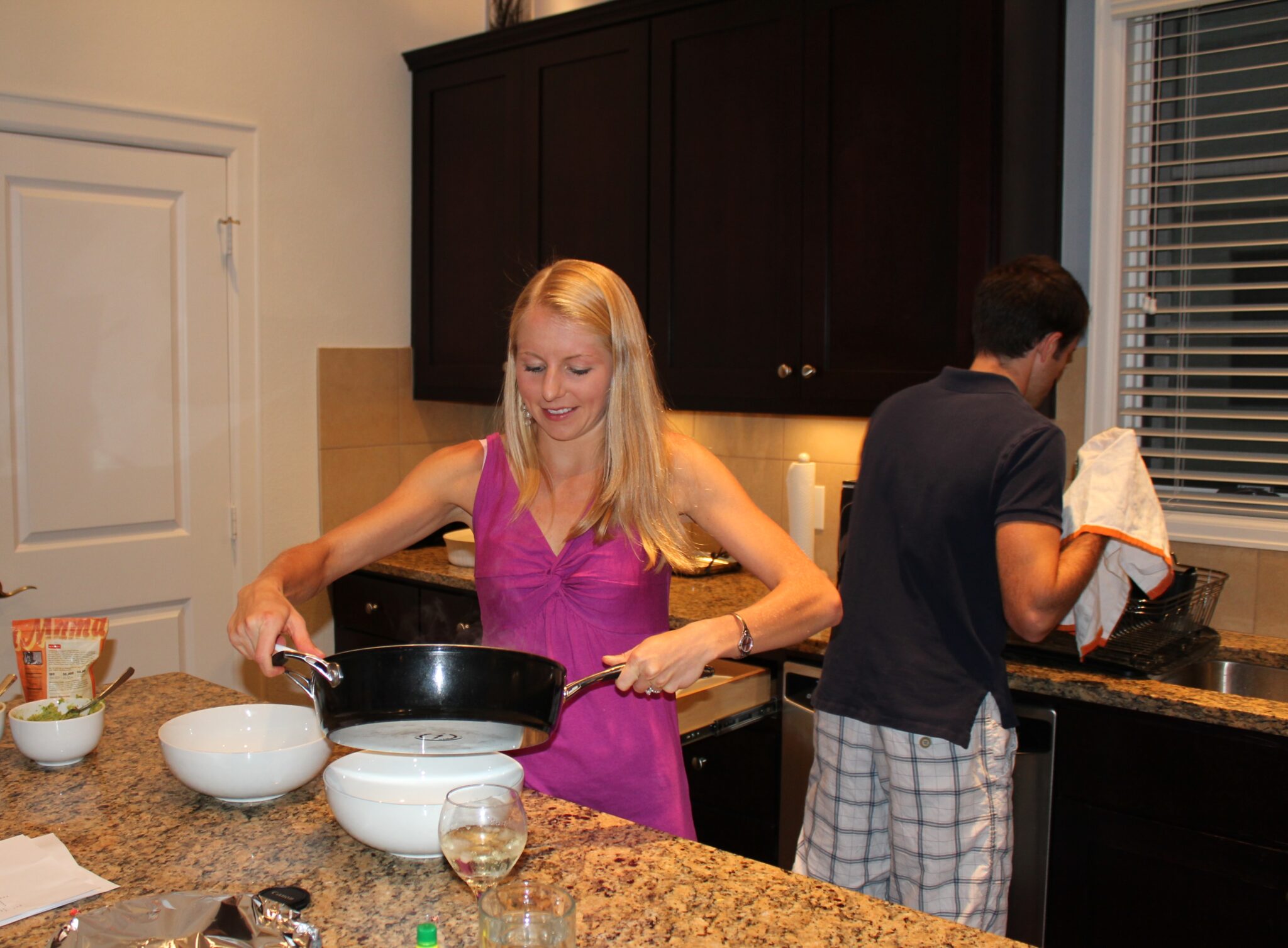 Last weekend, we cooked dinner with our friends Angela and Enoch (who Kevin ran against in High School, and who is now training for the 2016 Olympic Trials – check out his awesome Facebook page here!) … and lucky for you, we came up with some great recipes!  IMG_7032