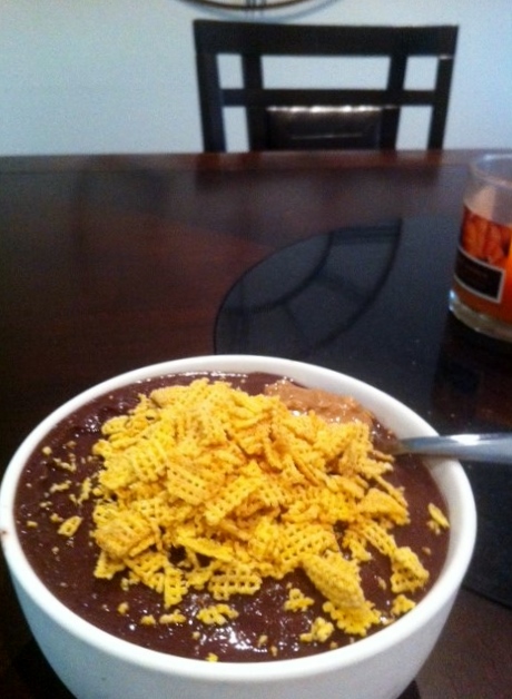 - For dessert, I had a chocolate VitaTop with some powdered peanut butter, blueberries, and unsweetened almond milk. Yum! I also had a few unpictured ginger chews throughout the day to settle my stomach.