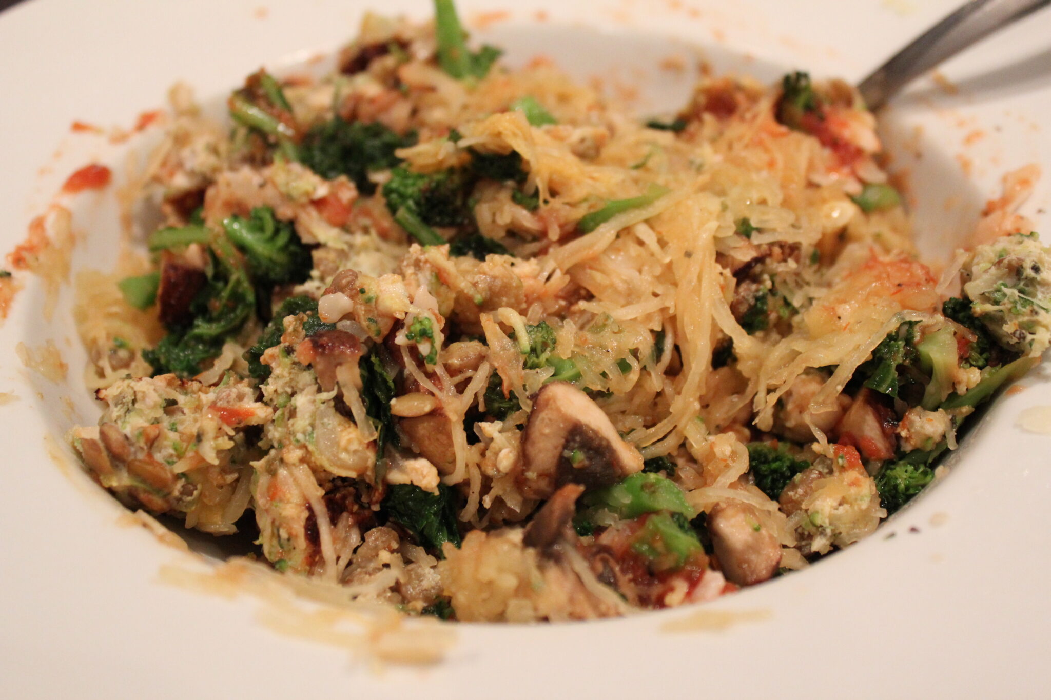 I’m so excited that spaghetti squash is coming back in season!!! The hubs is getting tired of zucchini noodles, though, I love the idea of mixing zucchini in the meatballs. He’ll never know! hehehe