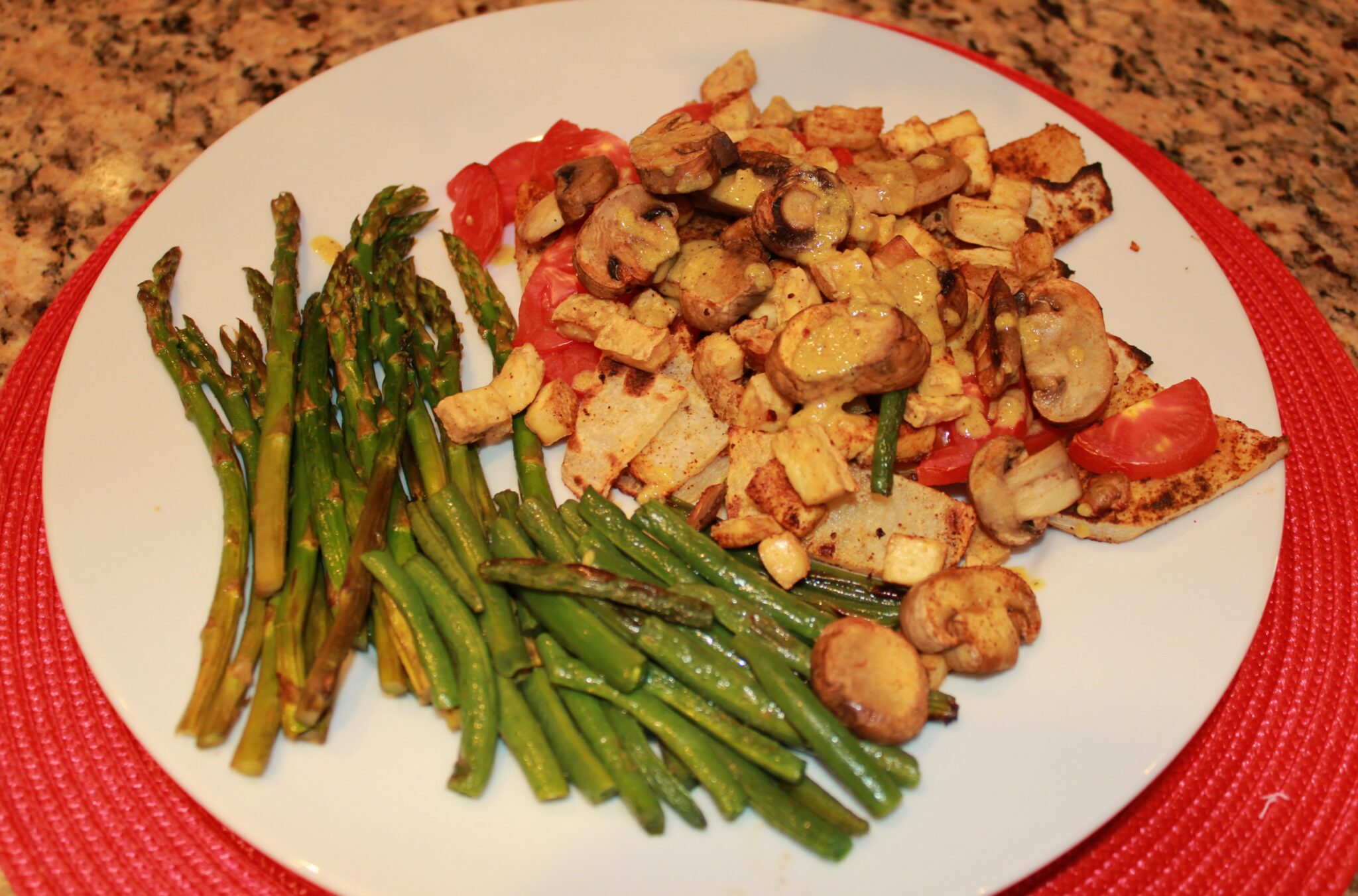 • Tofu and Jicama Nachos (from Sprint2TheTable): after seeing roasted jicama all over STUFT Mama and Sprint2TheTable‘s blogs, and seeing a huge jicama at my Farmer’s Market, I knew I needed to try this.  I added mushrooms, and topped the nachos with an impromptu “vegan cheese sauce” of nutritional yeast, tahini, lemon juice, water, cayenne, and cumin (I don’t know where I come up with this stuff!).  The nachos were fun to eat, nutritious, and delicious! jicama and tofu nachos