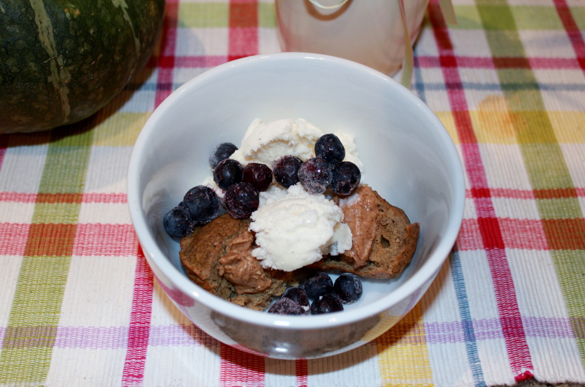 Now, it is Foodie Friday, and I have been sorely lacking in my recipe posts lately (sorry!).  Last weekend, I created a genius recipe for Peanut Butter and Banana Muffins, with no added sugar, no gluten, and no oil!  I topped a warm muffin with almond butter, blueberries, and vanilla ice cream, and I loved every bite …. until I gave Kevin a bite, and he said it tasted like FEET (hey, at least he’s honest!).  I tried them again the next morning, and while they did NOT taste like feet, they weren’t blog-worthy, so I’ll spare you the details!  pb2 banana muffin