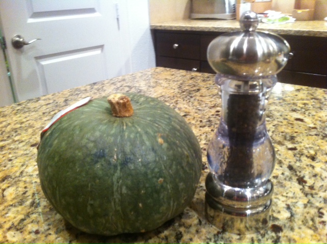 What is kabocha squash, you might ask?ย Well, it’s also called Japanese pumpkin, and (to me) it seems most like a combination between a pumpkin and an acorn squash.ย It’s naturally very buttery and sweet, but still very healthy!ย It’s loaded with beta carotene, iron, fiber, vitamins A and C, and potassium, and only has about 40 calories and 4g sugar per cup (despite the sweet, buttery taste!).ย The only downfalls: it’s somewhat hard to find (I couldn’t get it in Albertson’s or my Farmer’s Market, but could get it at Sprouts, Whole Foods, and Kroger), and it’s a bit hard to cut into and use.ย But it’s definitely worth it … so let’s dive into a recipe!