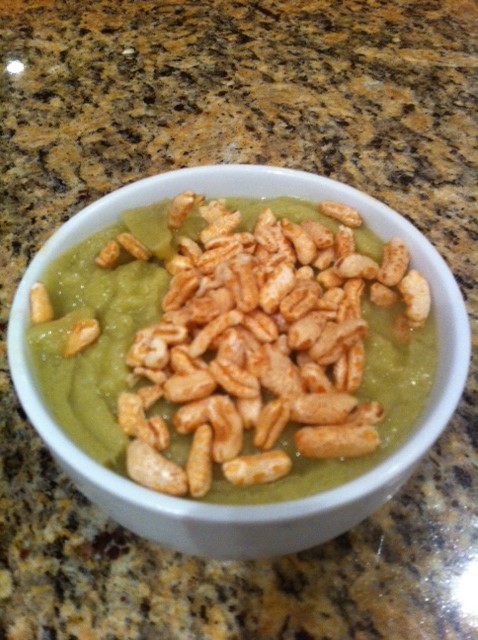 - Desserts. You know I couldn’t go a week without dessert! Most of my desserts involved fruit and unsweetened almond milk, plus some cinnamon or other spices, ice, and a Vitamix. Here is the AMAZING mango dessert that I highlighted in my 10 Healthy Desserts post (topped with puffed kamut, which is technically processed, but since the only ingredient is kamut I went with it), and an “apple pie smoothie” that I tried to create – it actually wasn’t that great or I would share the recipe!
