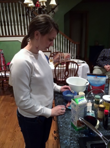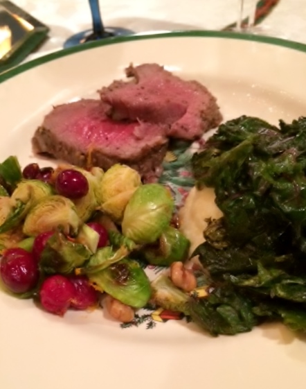Tuesday night, on Christmas Eve, we enjoyed a beef tenderloin, Christmas Cranberry-Orange Brussels Sprouts, and mashed cauliflower and rutabaga topped with garlicky red kale.  I somehow got the random idea that I wanted to make gingerbread cookies out of the leftover quinoa we had from the night before, and my sister is the biggest trooper and followed my (made-up) recipe to a T!  They’re were fine, but not great (my fault, not hers), so no recipe here. steak dinner lao cooking cookies megan and lindsey christmas 2013