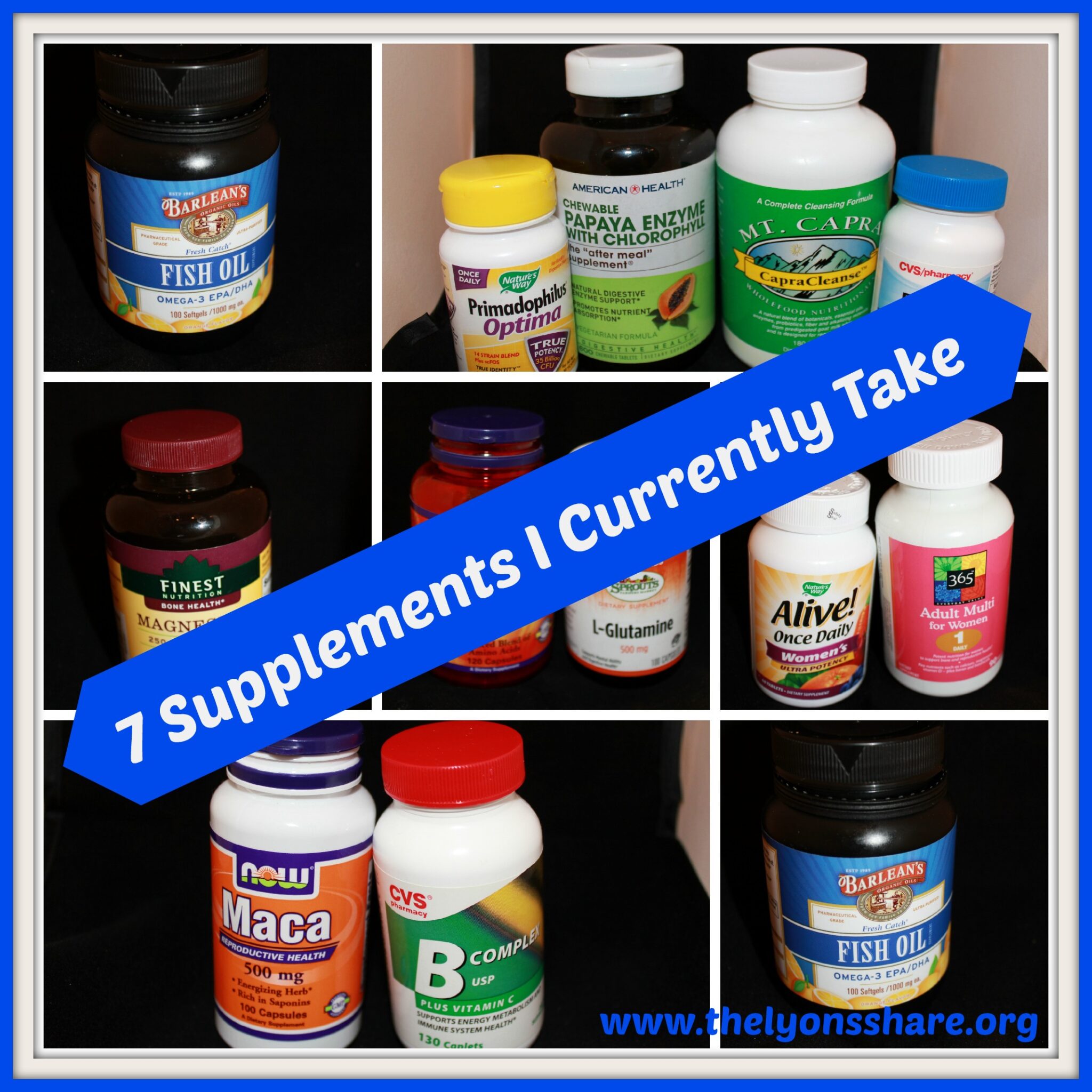 I love seeing posts like these! I take all of those except the maca an the omegas. I have maca powder and I feel like I eat enough salmon to grow an omega tree out my head. 😉