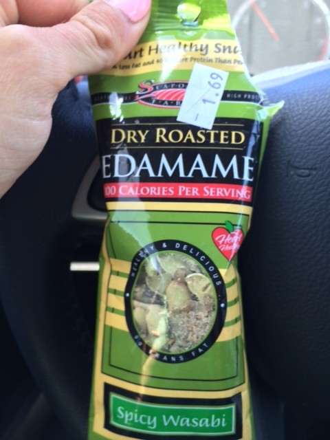 4. Dry roasted edamame.ย ย This has been one of my favorite snacks recently – I love the crunch and healthy protein from dry roasted edamame! ย I had the wasabi version (in a 200-calorie pack), and also brought along the lightly salted kind.edamame