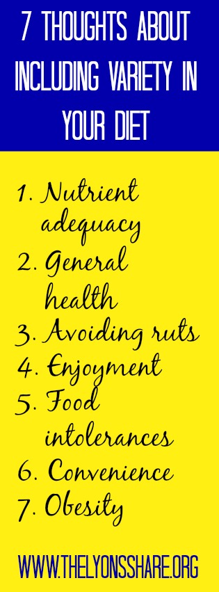 So tell me in the comments … Do you tend to eat the same things over and over again?  What do you think is important when considering the amount of variety in your diet?