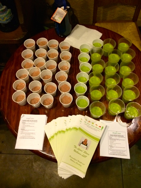 The second was in one of my networking groups, where I presented about my business, gave health tips, and served two smoothies – including the Summer Refresh-Mint Smoothie from above!  I know I look a little bit excited – nothing gets me amped up like talking about nutrition 🙂