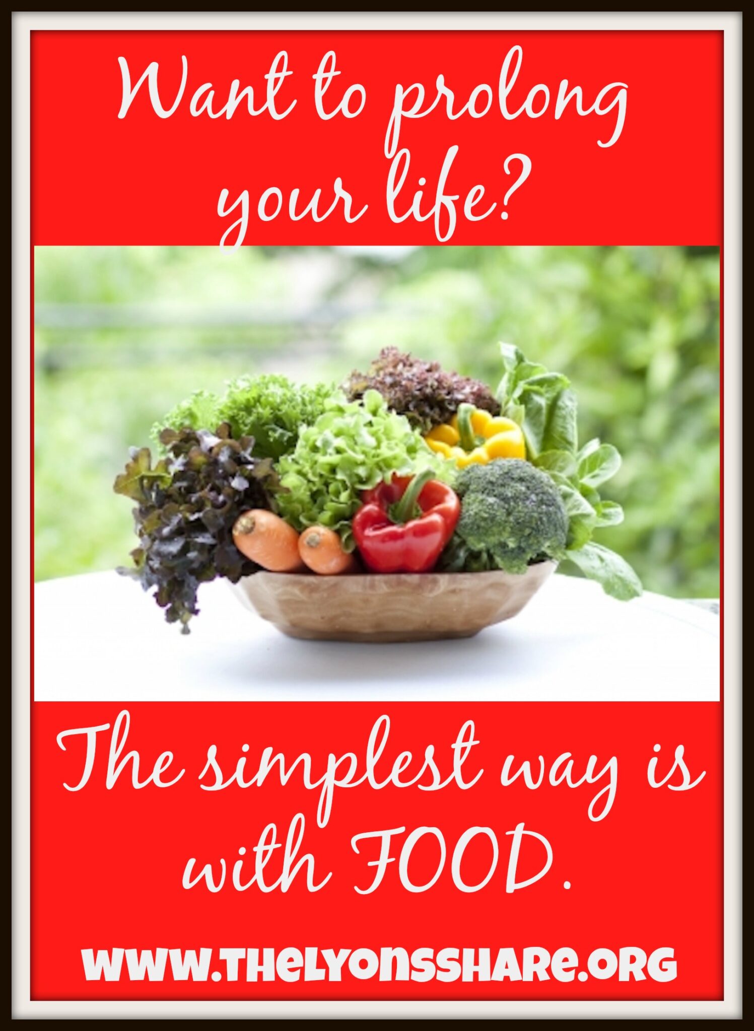 Eating vegetables can prolong your life. Plain and simple. Your body needs the nutrients from vegetables (and fruits) to function properly, fight off disease and inflammation, and give you energy to sustain your daily activity. If you want to live a healthy and vibrant life, you must eat your vegetables.