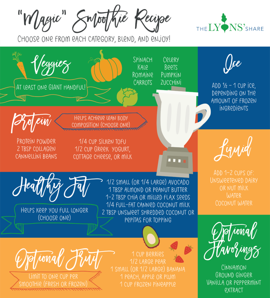 - Protein. Including a source of protein in your smoothie is a great way to ensure you’re supporting your lean muscle mass (which helps you burn fat!). It rounds out the meal and helps balance your blood sugar. Try a clean protein powder, collagen (see the benefits and my recommendations here!), cannellini beans (strange but good!), organic non-GMO tofu if you include soy in your diet, and milk, cottage cheese, or yogurt if you include dairy in your diet.