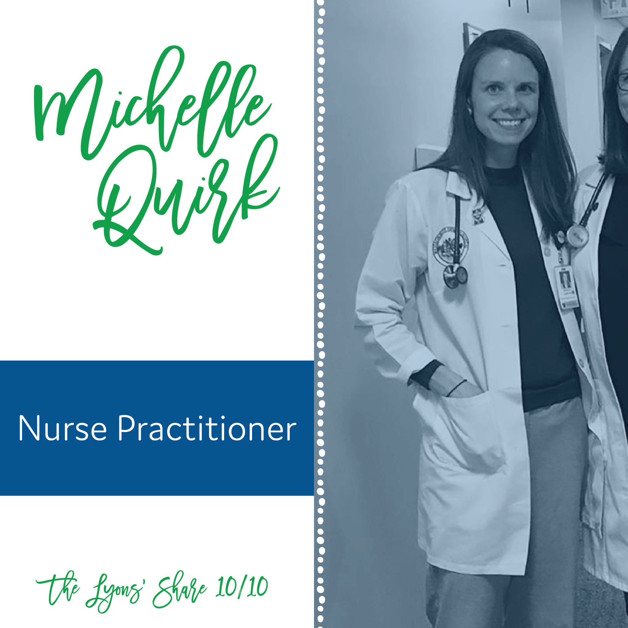 This week’s interview featured Michelle Quirk: Nurse Practitioner, runner, and mom. Michelle has great insight into the world of balancing a career and a family. She had lots to share about prioritizing herself and achieving her goals among her many commitments and priorities. She also had LOTS of helpful health tips, especially for busy working professionals!