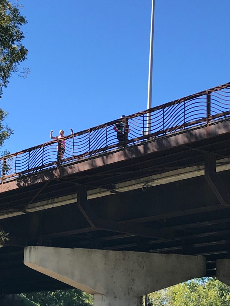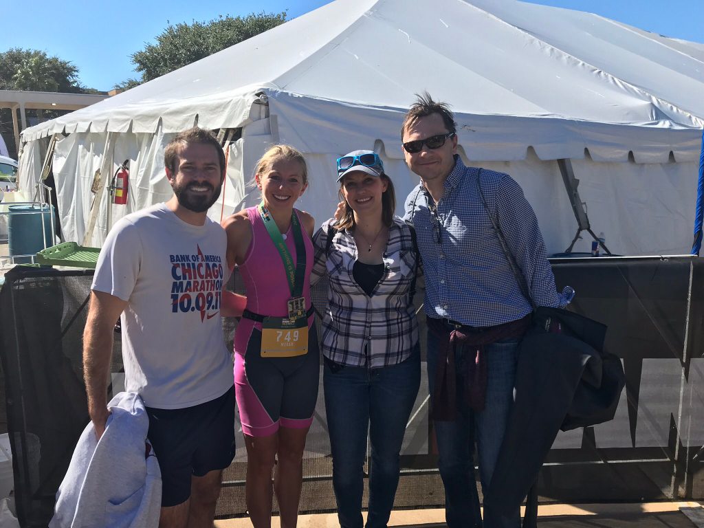 - Support makes a GIANT difference. In Galveston, my Mom, sister, and husband were cheering me on (even standing out in the storms to support me!), and their support truly made it one of the best days of my life. In Waco, Kevin and Lindsey returned, and Lindsey’s boyfriend also joined in (my parents were in Spain and couldn’t make it). Although I probably only saw them for a total of 3 minutes during the entire 6 hour race, I can’t even describe the boost of energy and determination they gave me. Every single time, they were encouraging, positive, and so helpful. At one point in particular, Kevin stood at the bottom of a hill, and yelled, “just run to the top of this hill!” It wasn’t one of the bigger hills, but I was at a low point in motivation and likely would have walked otherwise. When I heard his encouragement, I decided to run up, and immediately felt empowered. From the top, I gave him the “muscle” sign, and from that point on, I knew I had the energy to finish. Aside from those physically cheering me on, I knew I had so many people sending positive wishes and tracking me online. So, THANK YOU, from the bottom of my heart, for pushing me on!