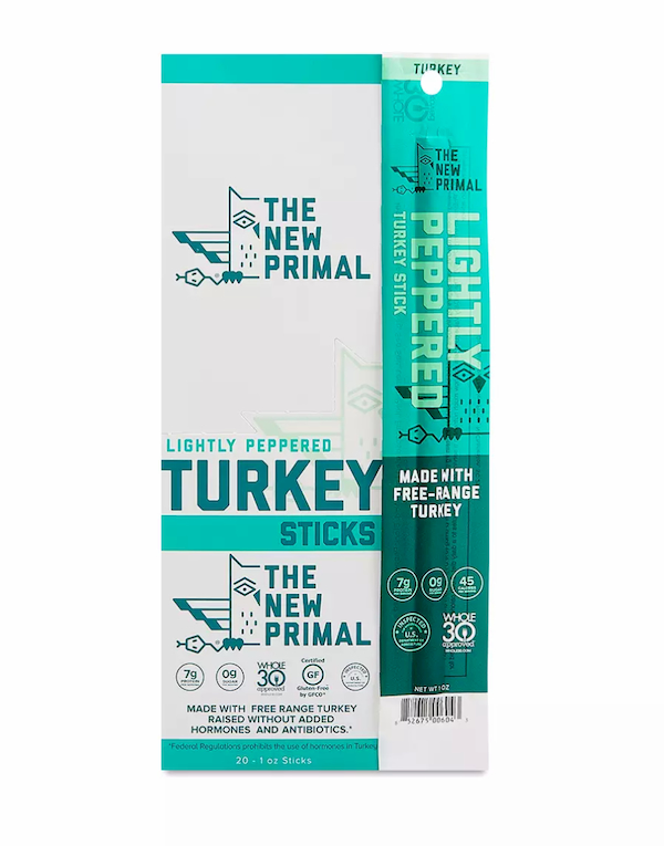 - The New Primal Turkey Sticks, Lightly Peppered: just like the Epic bars, these are a great, high-protein snack that are portable and will keep your blood sugar stable! I love that they have no added sugar and no junky ingredients.
