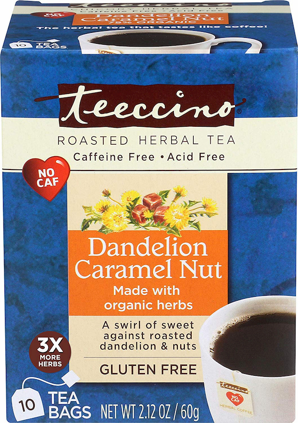 - Teeccino Dandelion Caramel Nut: I can’t find this variety anywhere else, and I love Teeccino as a caffeine free coffee alternative. It’s rich-tasting and delicious, and has tons of herbal health benefits!