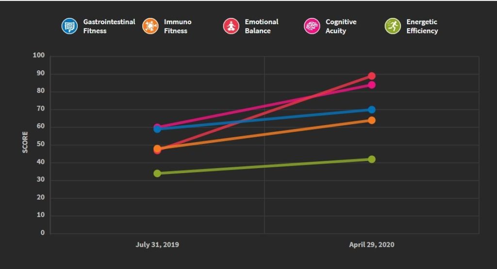 But this isn’t a sad story; it’s a great story! With months of intentional focus on my gut health, and really small tweaks that made big differences, my gut health is improving tremendously! I’m now firmly in the “good” category, and I’m proud that my biggest improvement has been in emotional balance, where I’m now “excellent” (also excellent in cognitive acuity)! And I feel much better with the tweaks I’ve taken on. I’m still working out a few things, and I’ll be a constant work in progress, but seeing improvement is reassuring enough for me to want to share this with you.