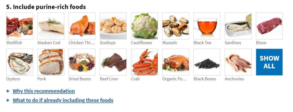 There are SO many things we can work on together, depending on the results of your individual test. From lifestyle practices, to food recommendations, to specific meal suggestions and recipes, to exercise plans, to supplements, we get SO much information with this test. You’ll see below my recommendation to include more purine-rich foods, something even I had not considered for myself prior to doing the test!