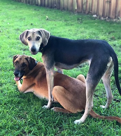 My walking buddies, Maverick + Riley.