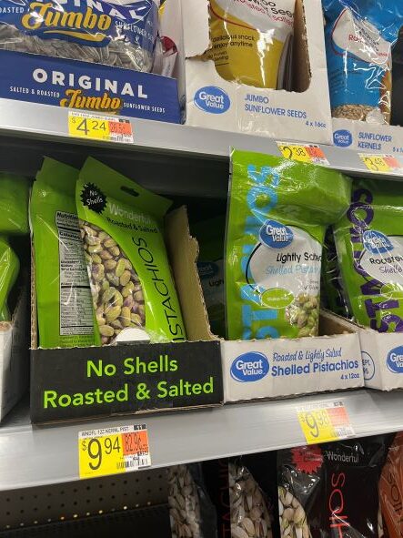 - Dry roasted nuts. It’s hard to find nuts that don’t use low quality oils (like sunflower, safflower, canola, peanut, or soybean oil), but Walmart carries several options! Check the ingredients – the only ingredients should be the nut itself, and salt if you like it (I do!).