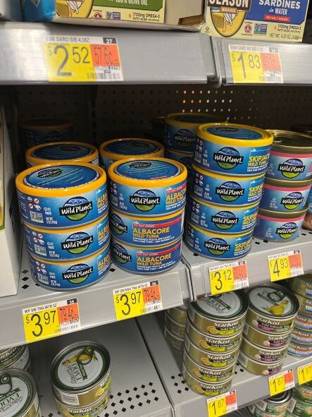 - Wild Planet tuna. One of my favorite tuna brands, because of the sustainable sourcing methods and lower mercury content than many. Let’s face it, Wild Planet tuna is more expensive than other varieties anywhere, but Walmart offers a lower price than most.