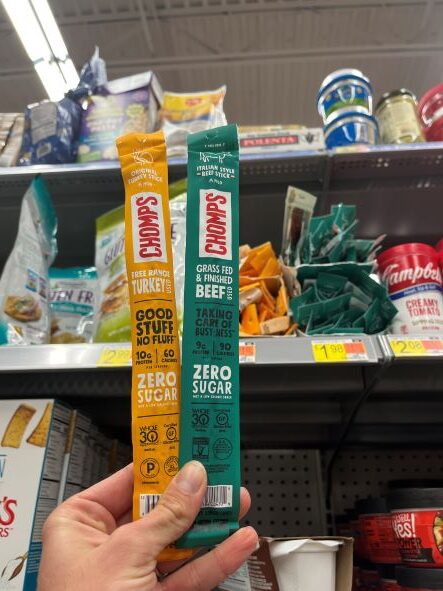 - Chomps meat sticks. One of my favorite high-protein, blood-sugar-friendly, on-the-go snacks, which I also love for travel (check out my other favorite travel snacks here!)
