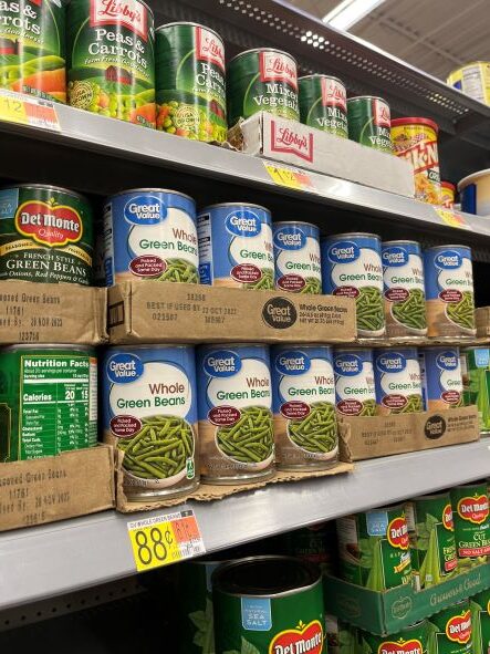 - Canned vegetables. I find it helpful to always have a few cans of vegetables on hand … you never know when you might run through your fresh produce more quickly than expected, or not be able to hit the grocery store when planned, or come in from out of town craving some veggies. As long as you look for varieties without added sauces or other less-healthy ingredients, canned is a great option! These green beans had only green beans and salt as ingredients, and I bought some to stock my pantry!