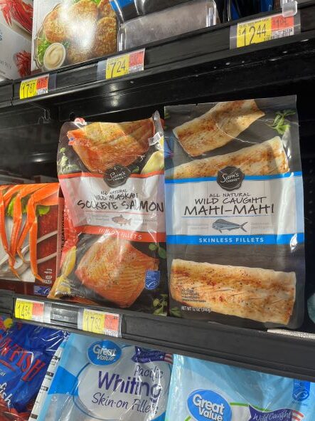 - Frozen fish filets. For those leery of cooking fish at home, individual frozen filets are a great option – no cleaning, no smelly leftovers, and simple to prepare. The wild Alaskan salmon and wild caught mahi-mahi are great options at Walmart!