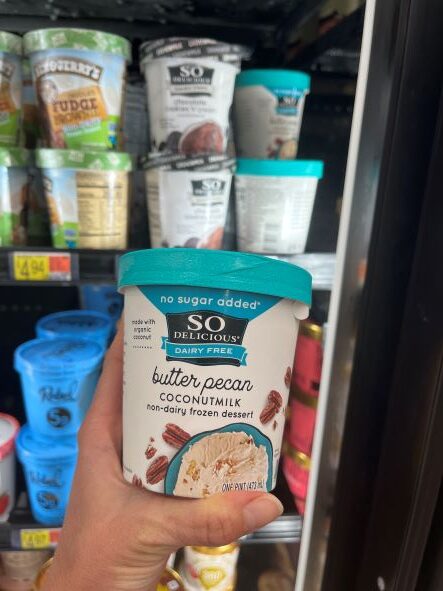 - So Delicious no sugar added coconutmilk ice cream. To me, So Delicious no sugar added is one of the best blends of great taste and great health. It’s dairy free, contains healthy fat from the coconut milk, and is a denser texture than some of the popular “light” options. I like the mint chocolate chip flavor best, but this one is tasty, too!