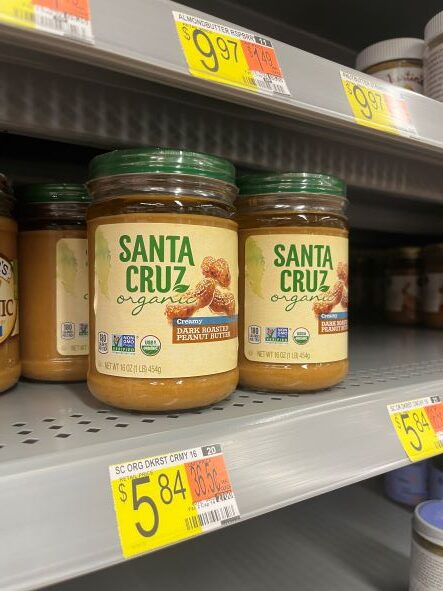 - No sugar added nut butter. Santa Cruz Organics has long been a favorite, although it’s cheaper at Kroger. I was happy to find the Sam’s Choice brand of no sugar added almond butter at a very low price, though! Ideally, our nut butters contain only nuts and salt – no palm oil, hydrogenated oil, or sugar of any form!