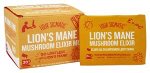 - Lion’s mane. Lion’s mane is great for focus, and I often take the plain Mushroom Elixir from Four Sigmatic when I want to sit down to write a blog post (like this one!) or record a podcast episode. It has been shown to enhance memory as well.